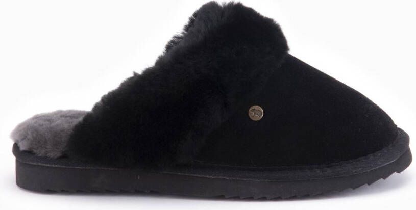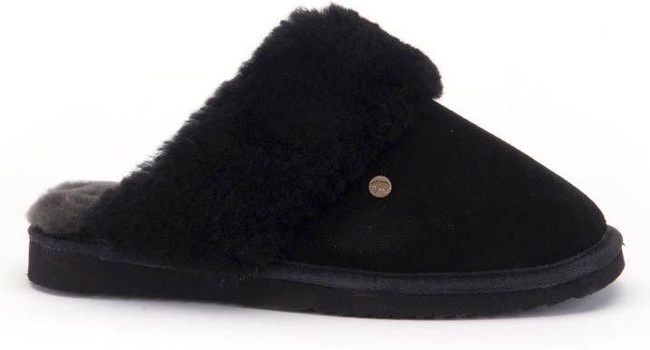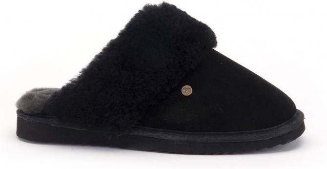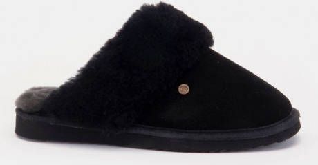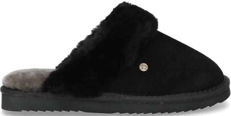 Specificaties: * Pasvorm: Instap slof * Bovenwerk: Suède * Zooltype: Rubber * Materiaal: Buitenkant is van suede, voering van 100% Merinowol * Kleur: Zwart * Extra bijzonderheden: De stevige rubberen zool geeft grip en het is geen probleem om ermee naar buiten te gaan.