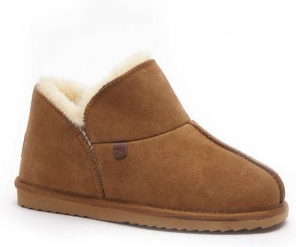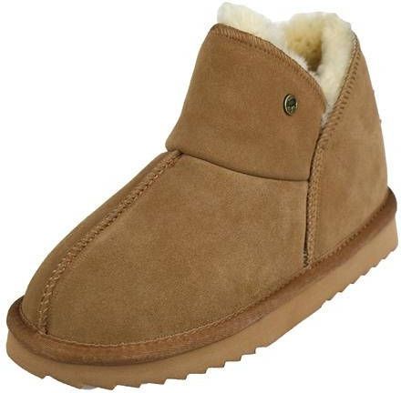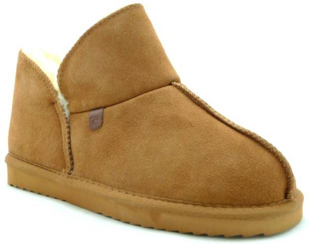 Specificaties: * Pasvorm: Instap slof * Bovenwerk: Suede * Zooltype: Rubber * Materiaal: Buitenkant is van suede, voering van 100% Merinowol * Kleur: lichtbruin * Extra bijzonderheden: De stevige rubberen zool geeft grip en het is geen probleem om ermee naar buiten te gaan.