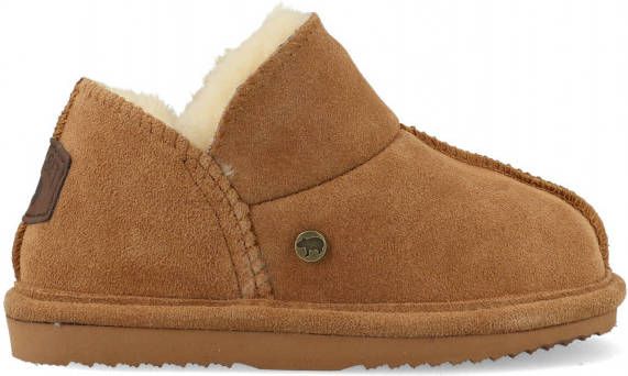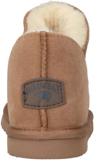 Cognac suede gesloten kinderpantoffel van het merk Warmbat.